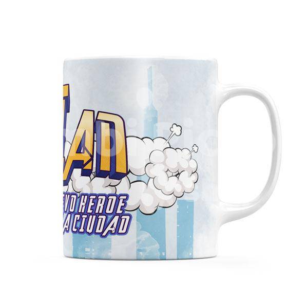 Taza de porcelana blanca que puede meterse en el microondas y el lavavajillas.